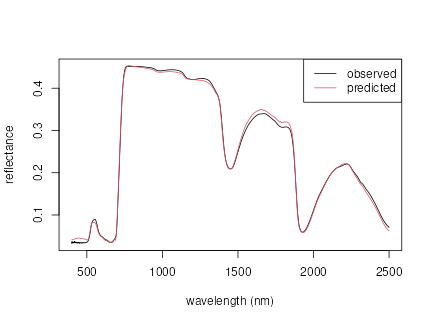 lines(wl, prospect.sim, type='l', col=2)